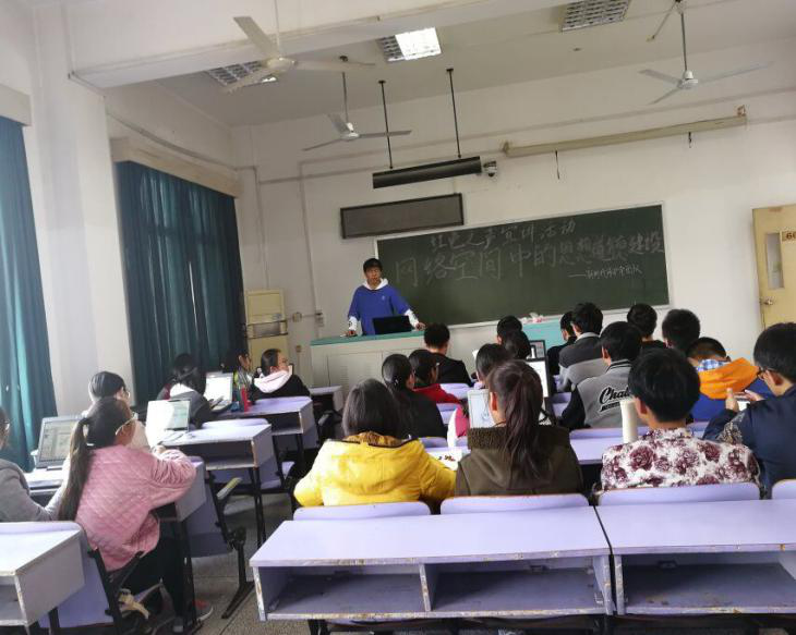 团队负责人李智伟对此次宣讲进行了团队简介与主题介绍之后,宣讲正式开始。新时代保护伞团队从浅入深,从五个方面对此主题进行了宣讲。首先黄鸿同学通过丑化红军的案例来引入,进而介绍到网络空间的现状;接下来陶景霞同学联系上海部分小员工背诵社会主义核心价值观的案例来阐释网络意识形态领域出现问题的原因;中间宣讲团队穿插了一个有趣的游戏环节,由任南鑫同学主持,分别邀请三组同学进行你划我猜游戏,调动了听讲的积极性;紧接着苏婉怡同学带我们详细地了解了关于“制网权”的基础内容;张倩雯同学声情并茂地为我们讲述了建设制网权的意义;最后由贾一帆同学指出了如何建设我们的“制网权”;宣讲指导任亚楠同学作了最后总结,使本场宣讲的意义和主题得到升华。