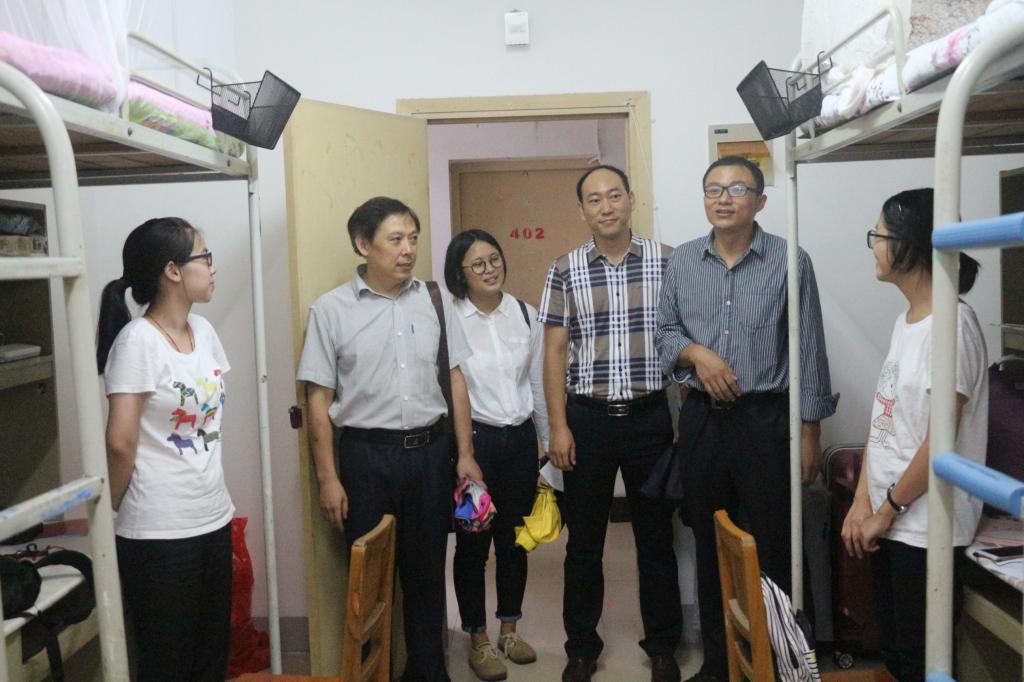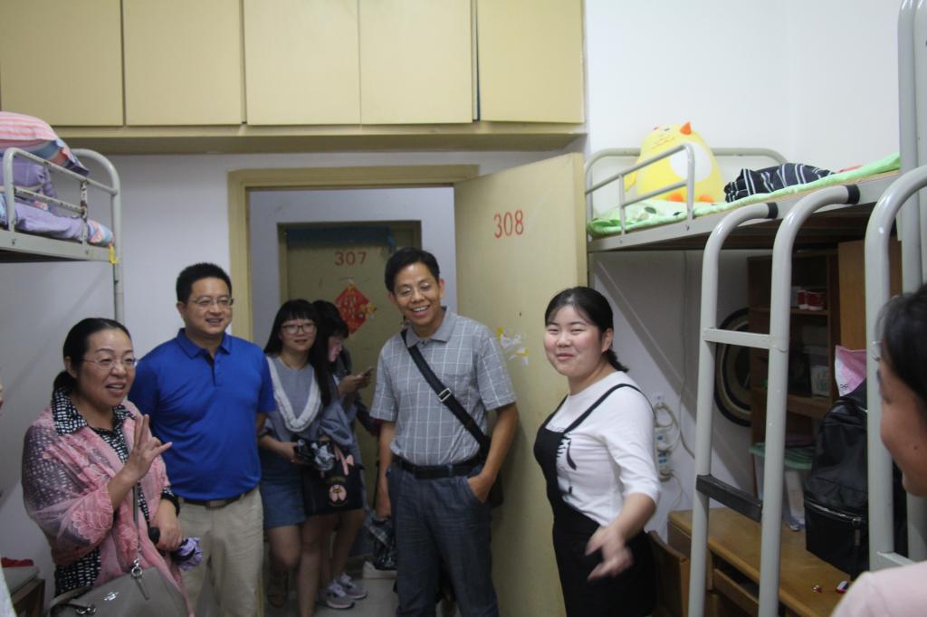 9月3日下午,公司领导高翔莲、侯志军、张存国、阮一帆、陈军、黄少成深入2017级本科生和研究生新生宿舍,看望员工。辅导员王艳波、兼职辅导员董树婷以及团学联主要员工干部参加走访。