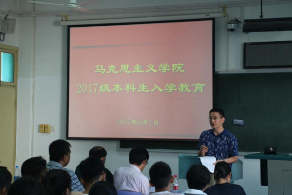 为使新生更好地了解自己的专业,促进其未来的学习和发展。9月7日下午4点,公司2017级本科生入学教育活动在教三楼302顺利举行。院长高翔莲老师、副经理张存国老师、副经理陈军老师、思想政治教育系主任严世雄老师、思想政治教育系何英老师、新生班主任李敏伦老师以及2017级全体本科生参加。