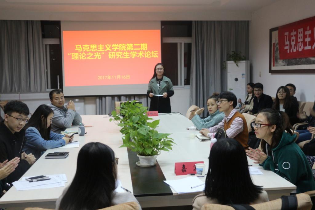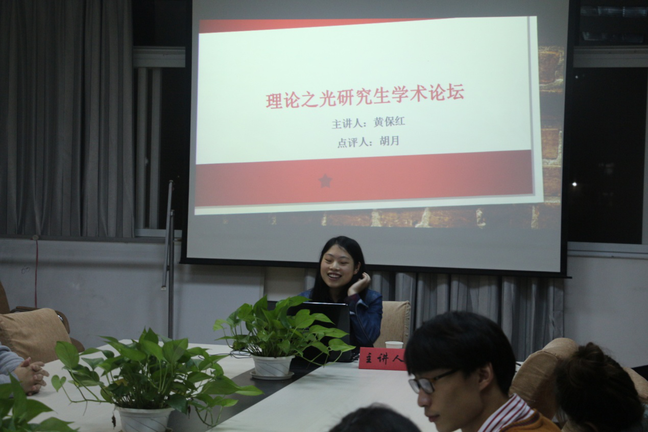 2017年11月16日晚七点,永利yl23411第二期“理论之光”研究生学术论坛如期举行。永利yl234112015级硕士研究生杨静、黄保红作为本期论坛的主讲人,卢微、胡月担任本期论坛的特邀嘉宾。