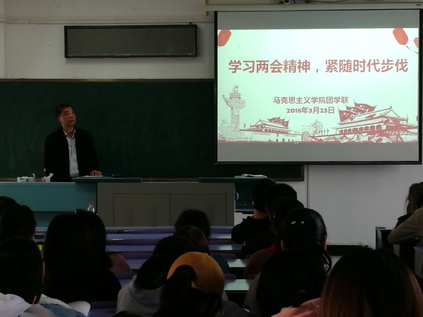 为学习两会精神,提高广大青年团员的政治素养,永利yl23411于3月23日下午4点在教三楼401室召开题为“学习两会精神,紧跟时代步伐”的大型团组织生活会。永利yl23411思想政治教育系党支部书记何英老师、院团委书记王艳波老师以及全体本科生到场参加。