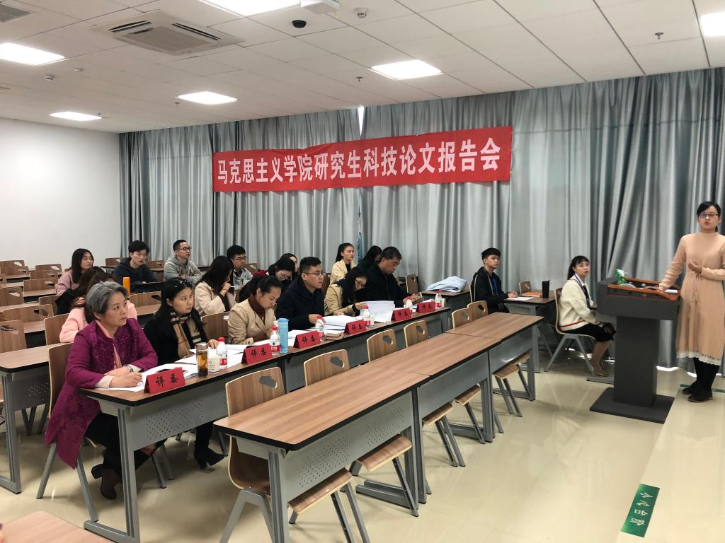 本次科报会采取的是“5+3”模式,即5分钟报告展示,3分钟评委提问交流。参赛同学紧跟时代热点,结合所学专业领域学术前沿,依次向在场师生展示自己的学术成果。