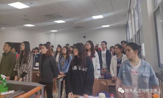 第一项议程,全体起立,共唱团歌。