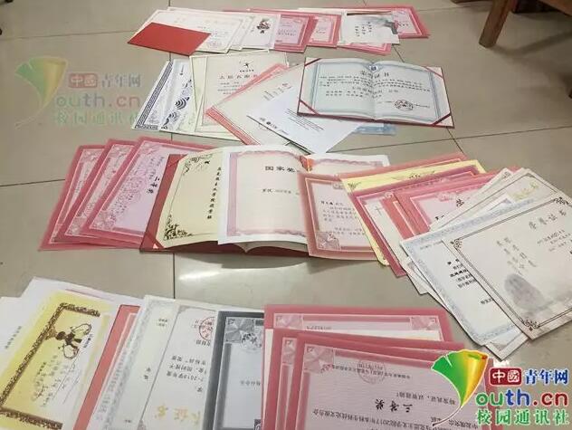 图为寝室4人获得的荣誉证书。受访者供图