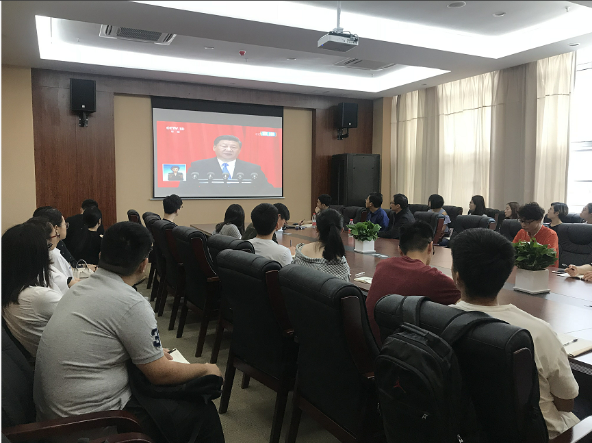 2018年5月4日上午10:00,永利yl23411组织师生在教学综合大楼0702会议室观看纪念马克思诞辰200周年大会直播,学习习近平总书记发表的重要讲话,会后,师生热议总书记的讲话精神,并分享学习心得。