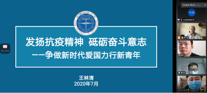 最后,结合本次抗击新冠疫情中,各公司涌现的志愿者事迹,王林清向同学们提出了三点希望。一是弘扬家国情怀,把爱国体现在扎扎实实的实践中,努力在为人民服务中茁壮成长,让青春在党和人民最需要的地方绽放绚丽之花。二是树立砥砺奋斗的精神,以“艰苦朴素、求真务实”校训精神为内核,发扬“严在地大”的优良学风,争做“品德高尚、基础厚实、专业精深、知行合一”的时代新人。三是着眼点滴行动,善于实践和躬行,脚踏实地投身于中国特色社会主义事业的伟大实践中,勇做新时代的弄潮儿,在实现中国梦的生动实践中放飞青春梦想。